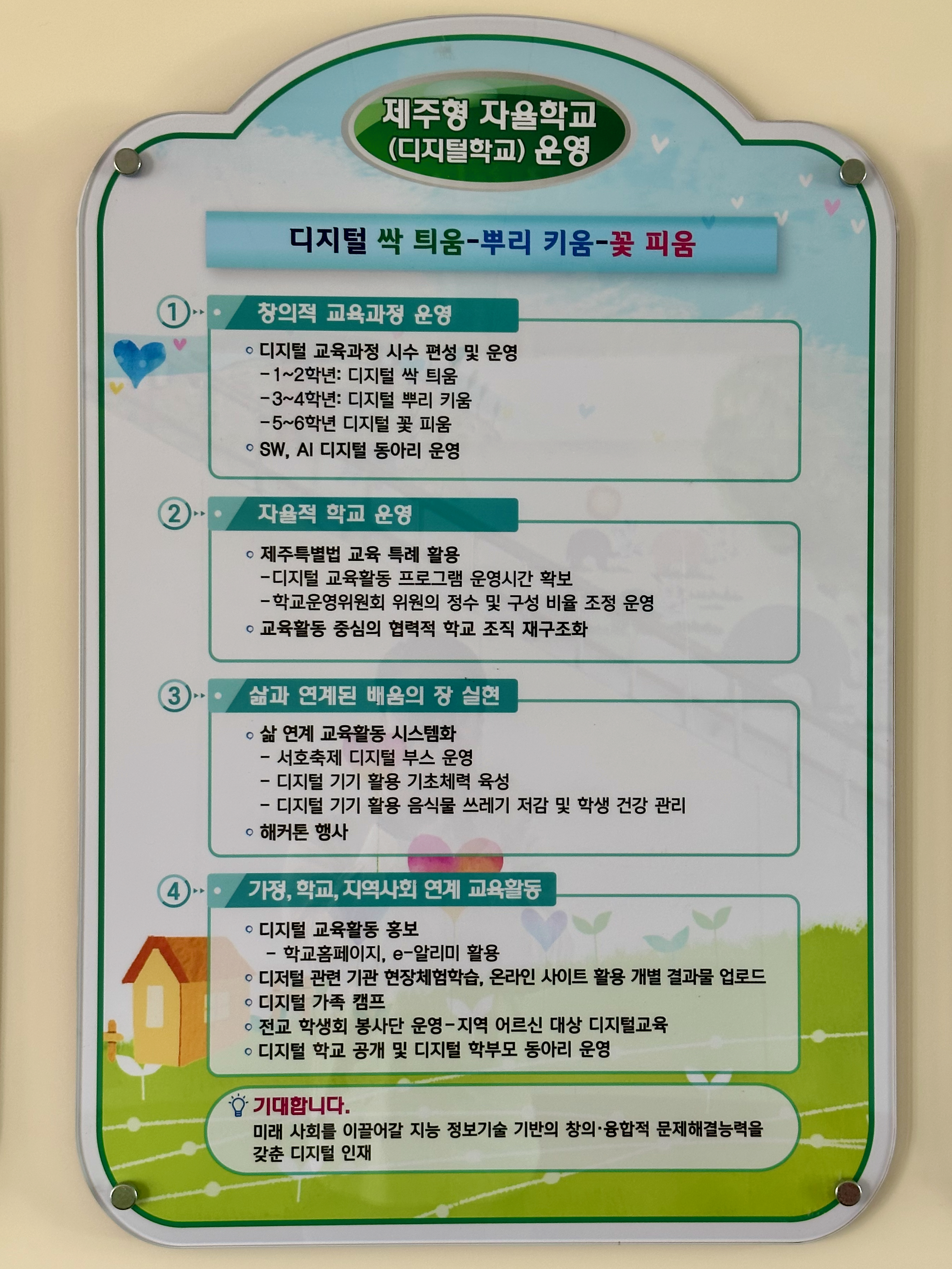 서귀포에 위치한 서호초등학교가 제주형 자율학교 중 디지털 학교로 선정되었습니다.