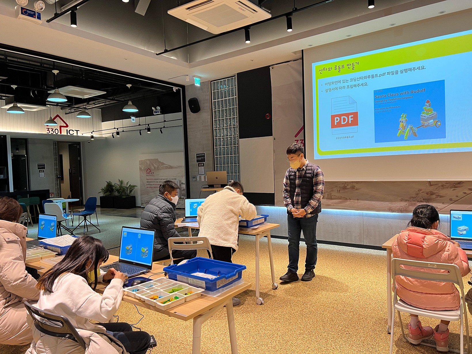 크리스마스 시즌에는 시즌 수업으로 산타와 루돌프 만들기 원데이 수업을 진행하기도 했습니다. 레고에서 제공하는 도안에는 없지만 다른 도안을 참고하여 수업을 진행하였습니다. 이 수업은 크리스마스 시즌이었기에 특별히 아이와 부모님이 함께 하는 수업으로 진행하였습니다.