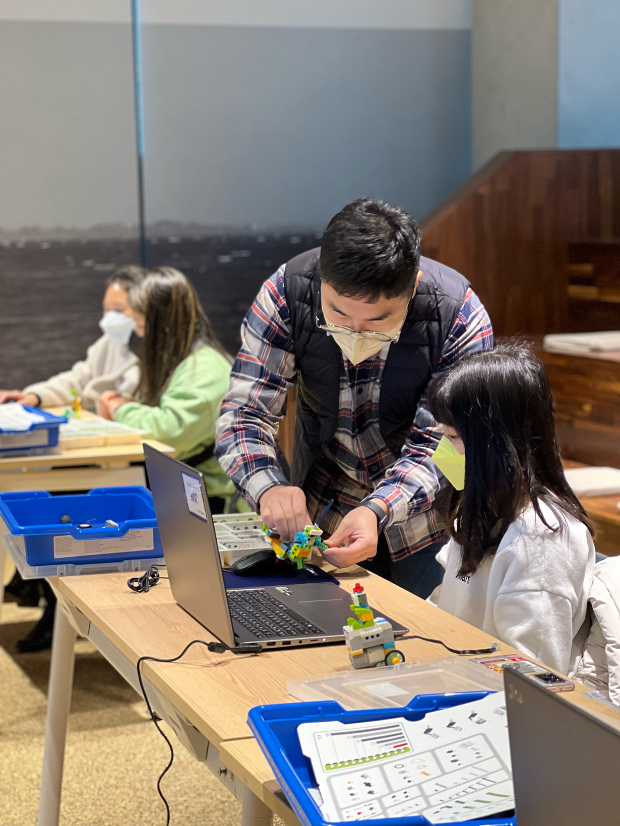 부모님과 함께 레고를 조립하고 코딩 문제도 같이 풀어보며 수업을 진행하였고 마지막엔 함께 만든 작품을 들고 부모님과 셀카를 촬영한 후 소감문도 작성해보면서 즐거운 크리스마스 원데이 수업을 진행하였습니다. 부모님들은 레고를 장난감으로만 생각하셨었는데 코딩 교육 교구로서 아이들의 창의력과 컴퓨팅 사고력에 도움을 줄 수 있다는 것을 아시고는 가격을 물어보기도 하셨습니다.